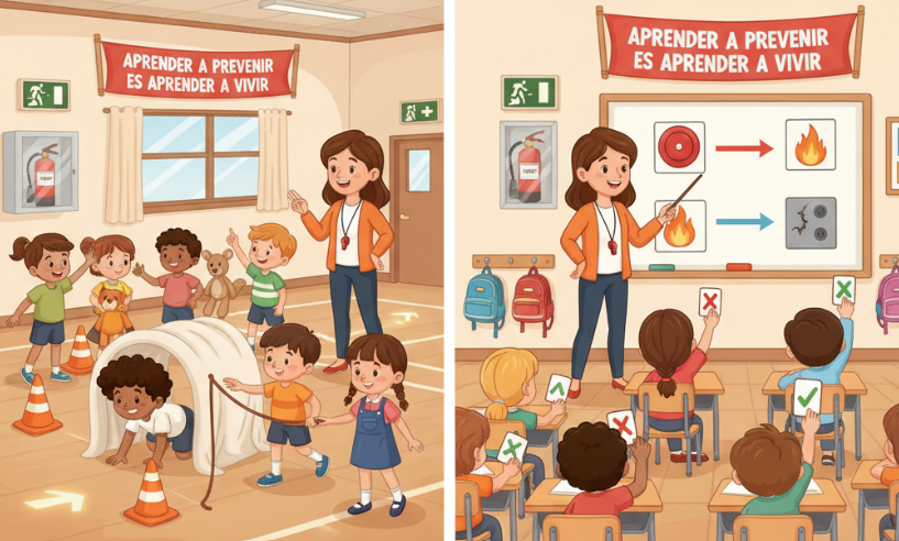 Enseñar a un niño no siempre requiere libros ni exámenes. Los juegos y las dinámicas participativas son herramientas poderosas para fijar conocimientos. Un “circuito del bombero” en el gimnasio, donde deben seguir rutas de evacuación sorteando obstáculos; un concurso rápido de preguntas y respuestas sobre qué hacer y qué no hacer ante un incendio; o un juego de tarjetas para clasificar riesgos y elementos seguros. Todo ello convierte la prevención en algo tan atractivo como un recreo.
