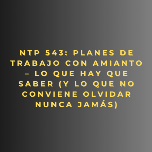 NTP 543: Planes de trabajo con amianto – Lo que hay que saber (y lo que no conviene olvidar nunca jamás).